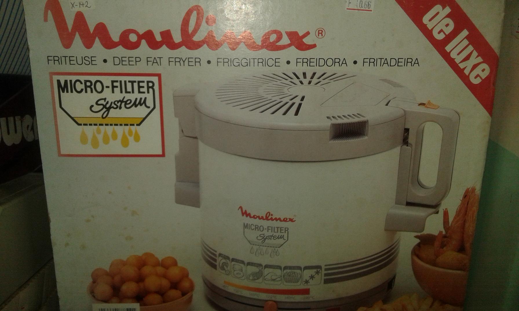 | 0640 | Moulinex Fritteuse mod. 878 Leistung 2.000 W, 2,5 L Ölbehälterkapazität, ausgestattet mit einem internen Filter, der das Öl für mehrere Durchgänge sauber hält. |