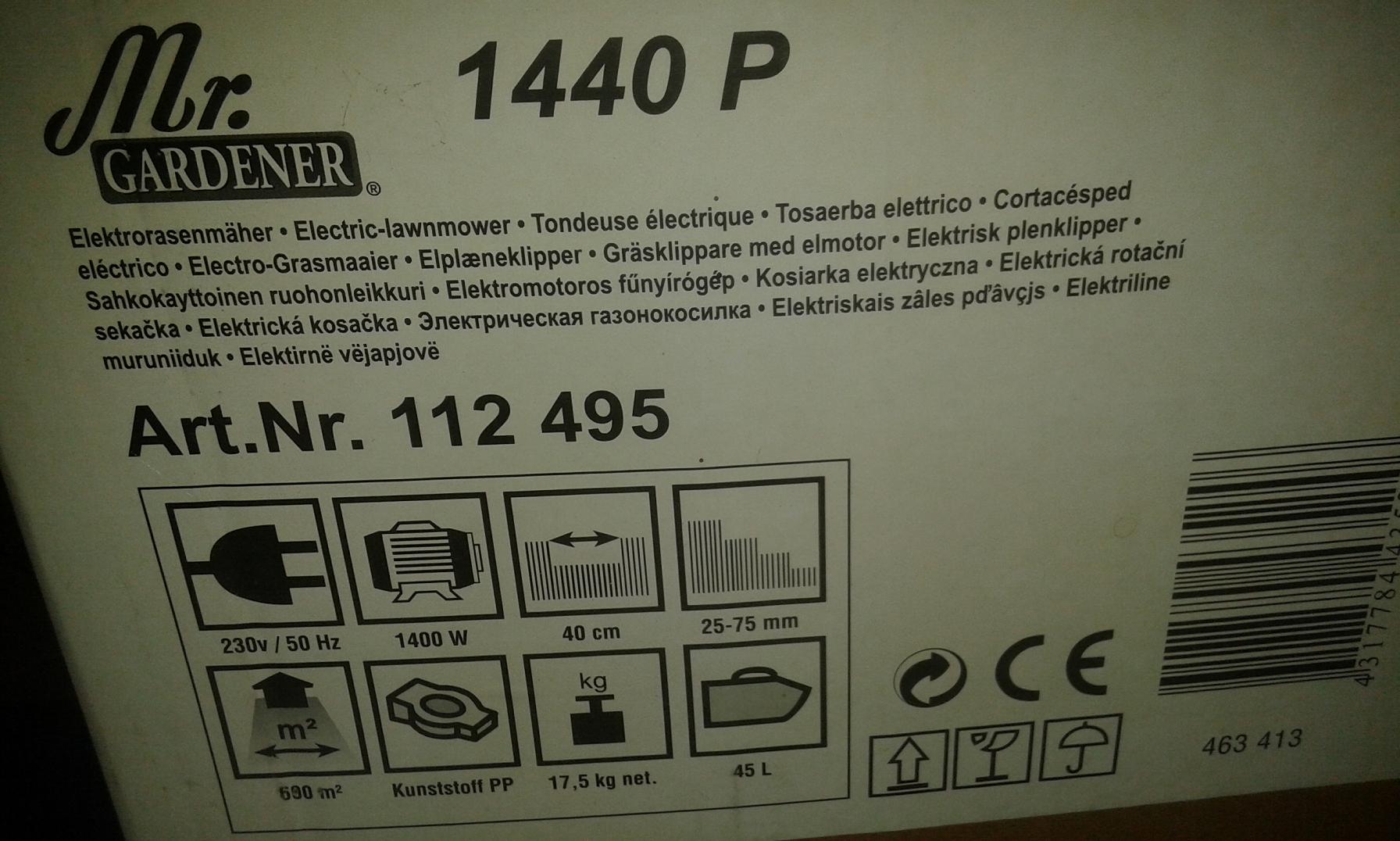 Sonstiges: Gartengeräte: Rasenmäher: Elektrorasenmäher Gardner 1440P 1400W |