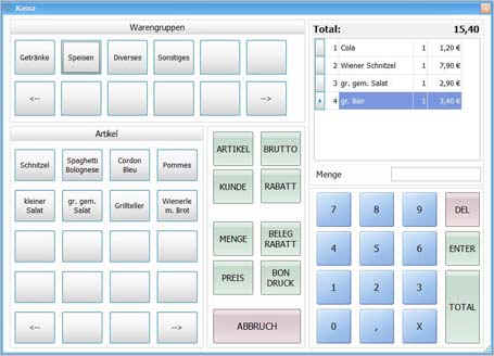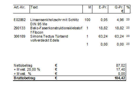 aus: CRM-Adressenverwaltung für Kunden und Lieferanten, Kategorienzuordnung, Aktivitätenverwaltung. Verkaufsdokumente (Angebot, Auftrag, Lieferschein, Rechnung) eRechnung an den Bund - SEPA/XML Format Einkaufsabwicklung (Preisanfrage, Bestellung, EK-Lieferschein, EK-Rechnung) Lagerverwaltung (Lagerorte, Zu-Ab- Umbuchung, Inventur) Anbindung an Outlook, Word, Excel Artikel und Kundenkartei OP-Verwaltung und Mahnwesen Formulareditor - Sie können die Dokumente selber gestalten zahlreiche Auswertungen und Analysen |